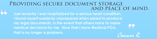 MedicalPOA offers the only secure documentation storage system online for your legal paperwork. This database serves as a central location for all your critical files, that can be accessed 24-hours a day, 7-days a week, when the time comes.